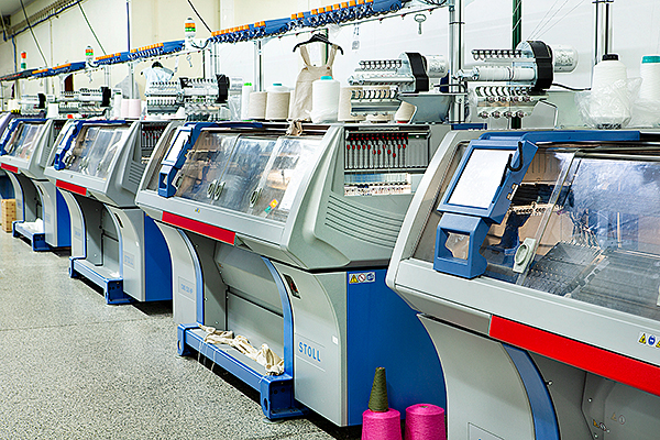 The factory is equipped with 120 knitting looms in gauges 3/5/7/10/12/14. Our knitting machines work around the clock, in a three-shift system.